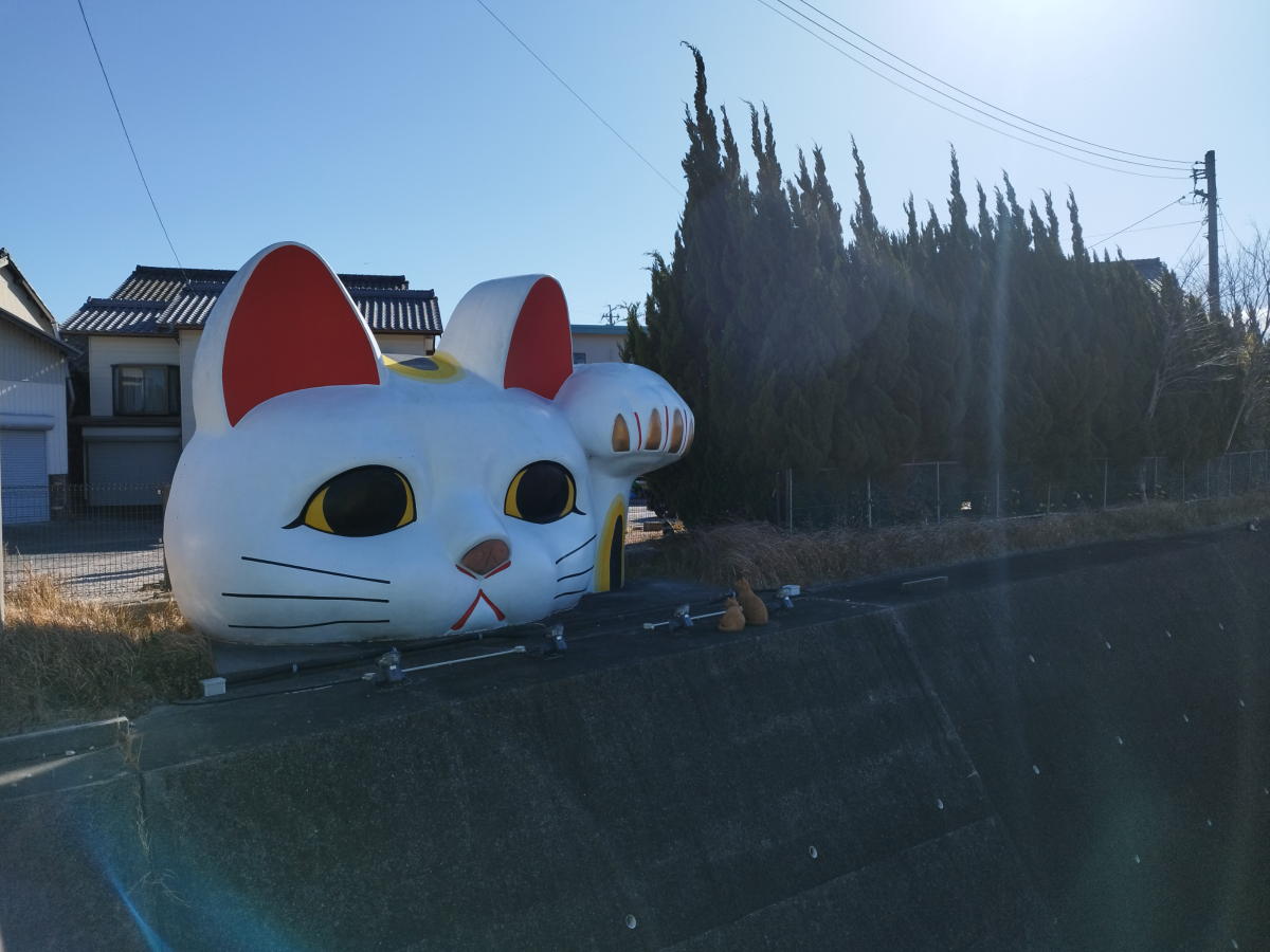 上からこんな大きな招き猫ちゃんが下の道路の車を眺めてますよ♪