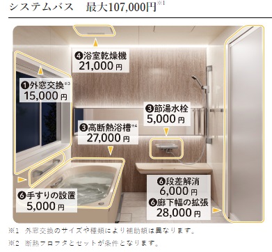 例えば、お風呂を新しくすると10万円近くの補助金が出る場合があります。