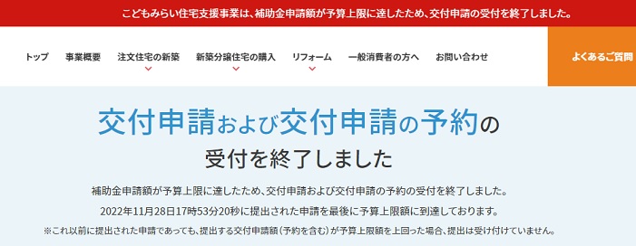 取り急ぎ、こどもみらい住宅支援事業の受付終了のお知らせでした。