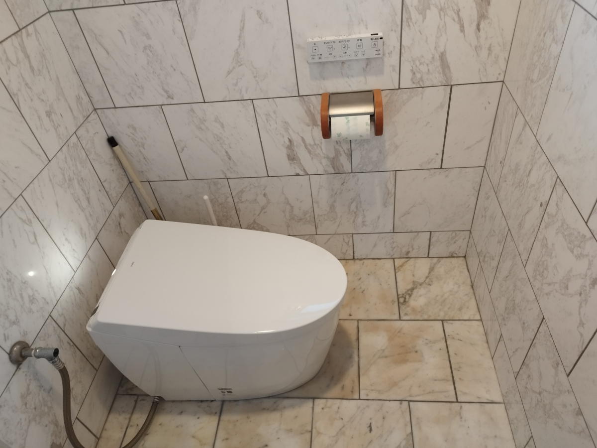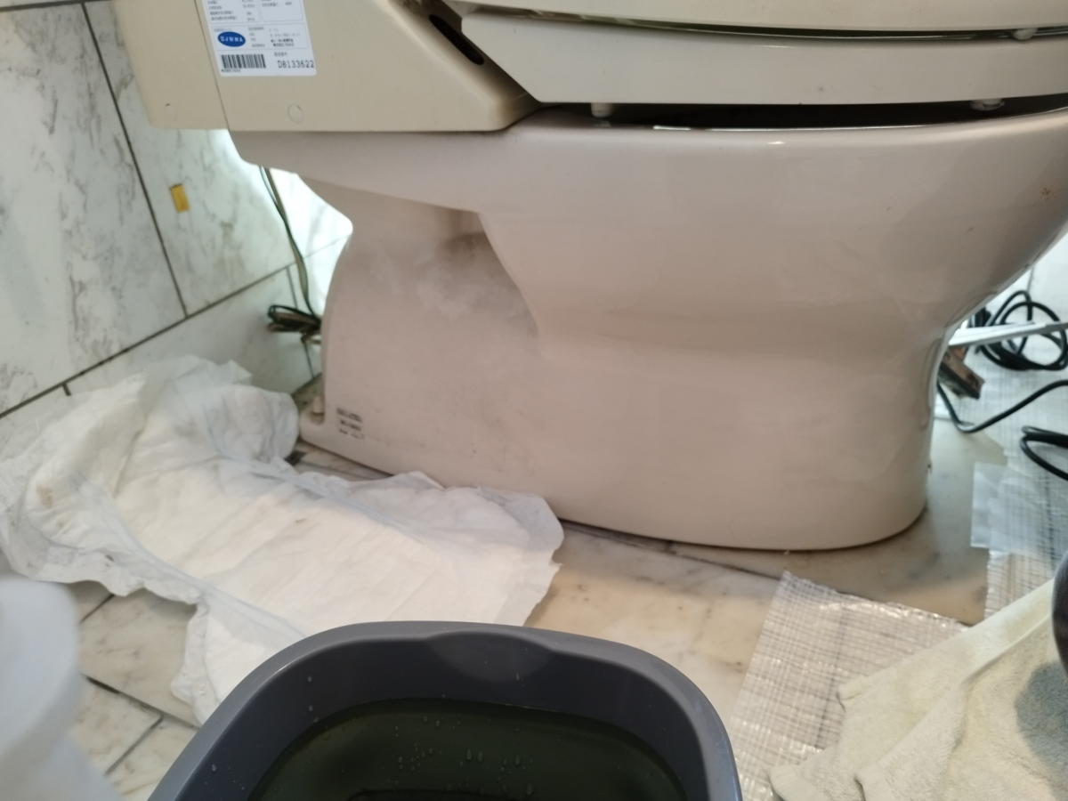 今回もLIXILの便器からTOTOの便器に取り替える際、便器の足元が短くなることがわかっていたので、設置の際に必要な「ビス穴」が見えるのを考慮し、ほんの少しだけ正規位置よりずらしての設置でした。