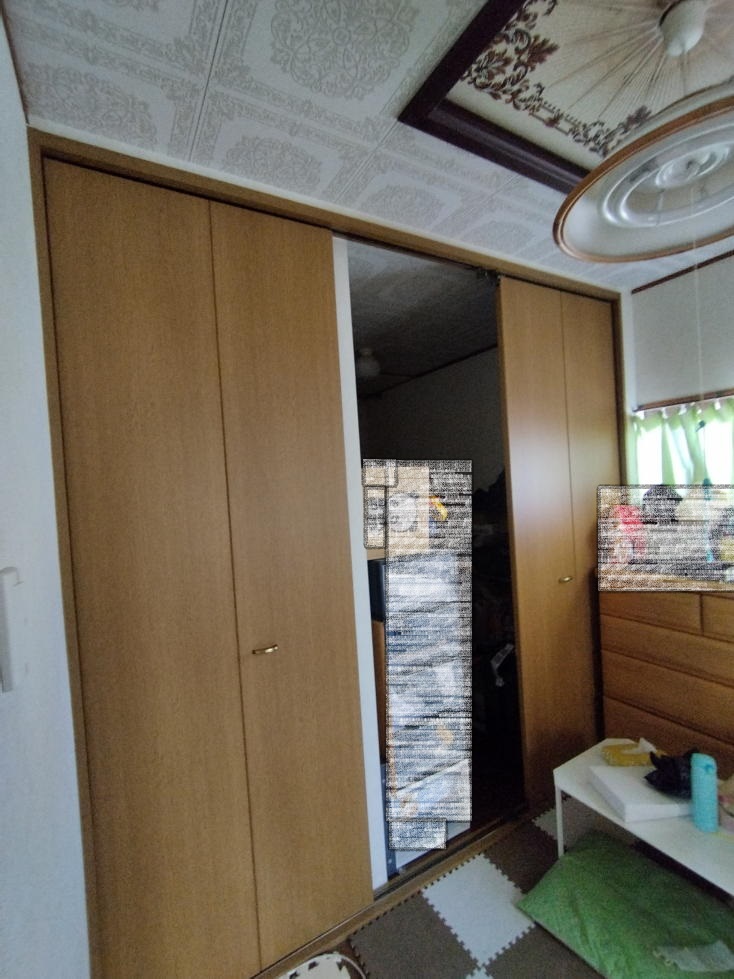 お部屋の奥にあるウォークインクローゼット 3枚の折戸だったようです。