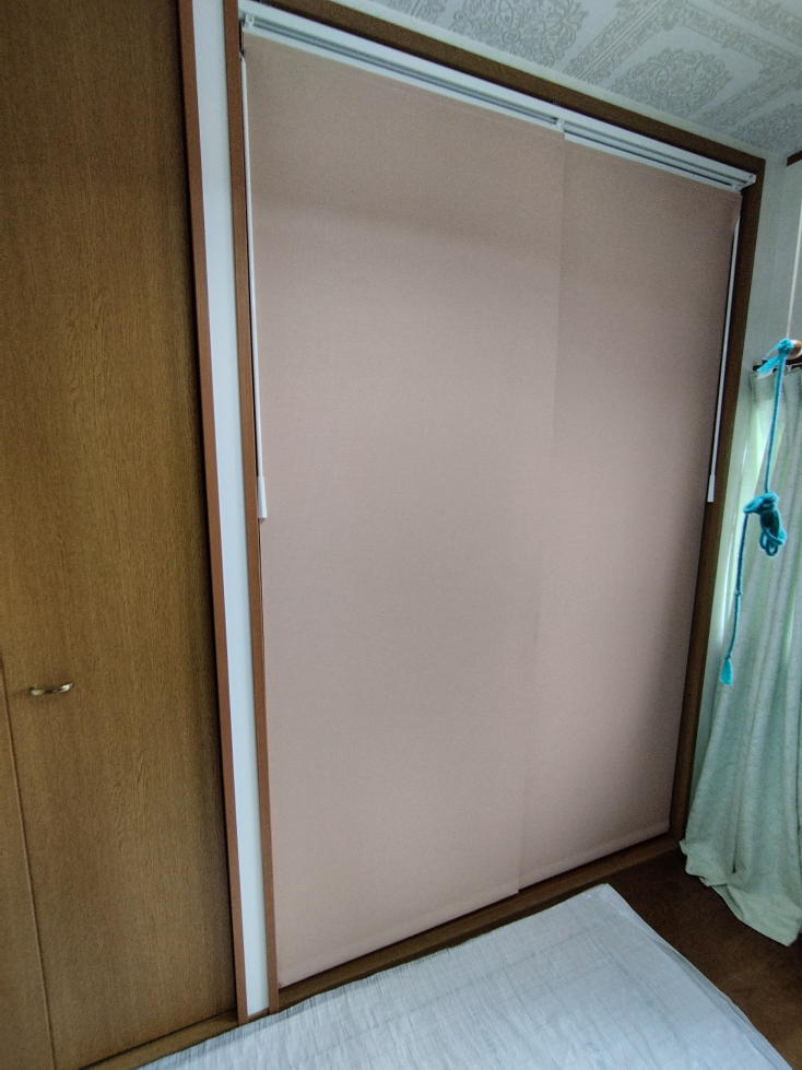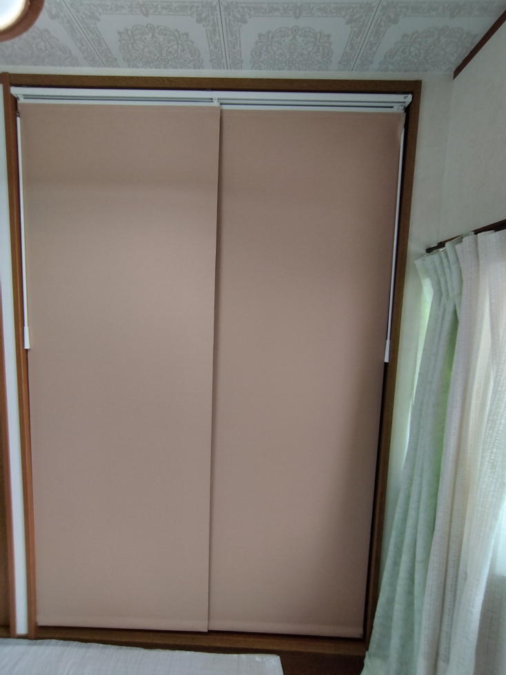 ロールスクリーンの生地で、引き戸のような操作性があるものです。