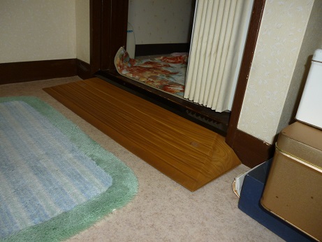 上がりにくくなった足でつまずかないように、段差を少なくするスロープを取り付けました。