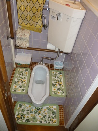 すでに手すりは取り付けられているものの、段付きの和式なので、立ち座りに不便を感じておられました。