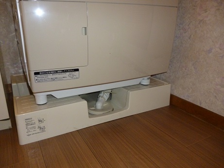 さらにこの洗濯パンは優れもので、足が高いので、排水ホースがちゃんと取り出せるんです。