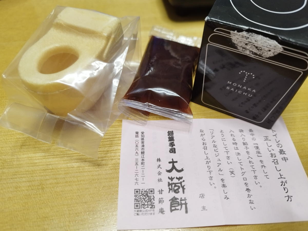 箱の中味はこんな感じで、便器(LIXIL・サティス)をかたどった最中生地と餡子。